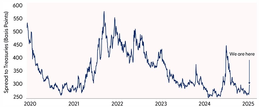 High-Yield Spreads Have Widened but Are Still Not Wide